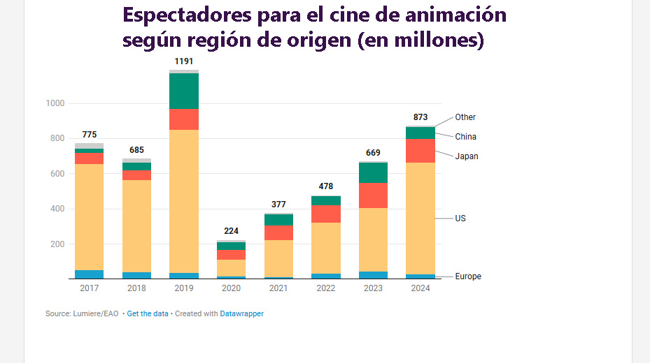En 2024, las entradas vendidas de películas de cine de animación en todo el mundo superaron los 880 millones, una cifra que iguala la media de los tres años previos a la crisis sanitaria causada por el covid 19. Los datos, extraídos del informe "Theatrical animation films – Insights into market dynamics 2017-2024" del Observatorio Audiovisual Europeo, dibujan un mapa de recuperación, pero con sombras y claros muy definidos.