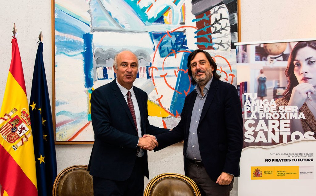 Fernando Benzo, secretario de Estado de Cultura, y Antonio Guisasola, presidente de la Coalición de Creadores e Industrias de Contenidos, firmaron este lunes el convenio para la defensa de la Propiedad Intelectual, publicado en el Boletín Oficial del Estado del 18 de mayo. El acuerdo pretende establecer un marco general de colaboración para reforzar la protección de los derechos de los autores y sensibilizar sobre el respeto de los mismos.