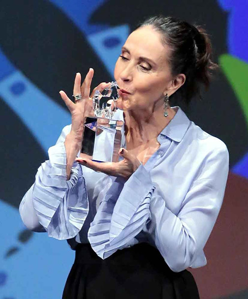 La actriz de 65 años, contestó a la ovación diciendo que "me he dedicado a hacer lo que más me gusta en la vida y a hacerlo con disciplina, compromiso y respeto. Agradezco que se me reconozca".